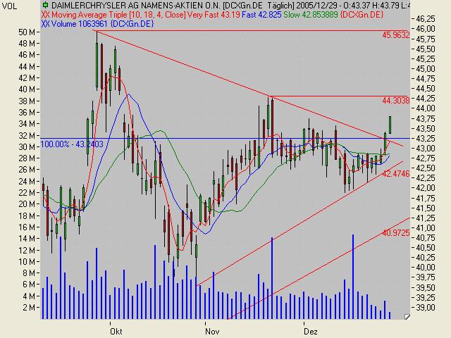 Die Aktie von DaimlerChrysler notiert aktuell mit einem Plus von 1,18 Prozent bei 44,60 Euro.