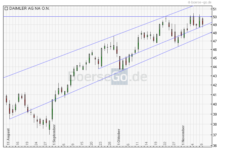 Nach dem LKW-Sektor kommen bei Daimler nun auch die PKWs wieder in Schwung. Die Aktie ist trotz der Kursgewinne der letzten Wochen noch günstig bewertet. Charttechnisch hat der Titel die kurzfristige Unterstützung bei 45 Euro bestätigt und damit die Voraussetzungen für eine anhaltende positive Kursentwicklung bewahrt.
