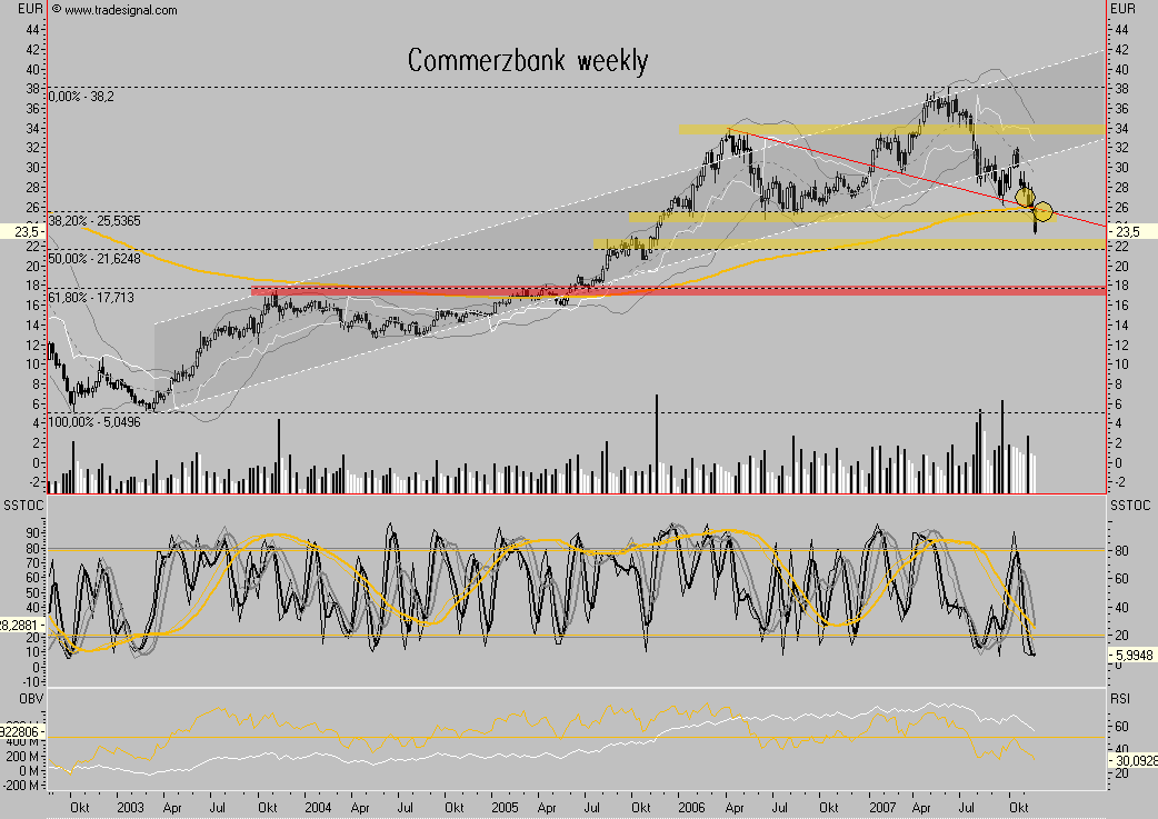 wie wichtig für die ALV die ca. 140 ist, wird im mothly klar, hälts dort nicht, ist sogar 114 denkbar und wahrscheinlich? Zwischen 114/115, 128 und 140 sollte eine ziemliche Volazone sein und wenn die ALV hier durchbricht (140), bin ich mir ziemlich sicher, daß die anderen Financials folgen würden, allerdings hat die DBK aktuell ein KGV von 7,5 und eine Dividendenrendite von ca. 5, insofern ist es dezeit nur mit einer Ausweitung der Finanzkrise denkbar, quasi als Spike, ansonsten würde ich bei solchen Schnäppchen annehmen müssen, daß das Wachstum der Weltwirtschaft rückläufig würde?