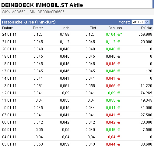 Wenn ihr auch Aktien von Deinboeck habt, kurze Mail an mich und ich aktualisiere die Zahlen. Also los Jungs, schick mir BMs!