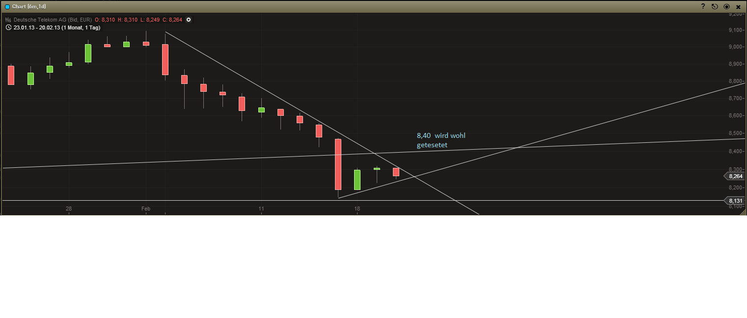 Wenn ich nicht schon Telekom Aktien hätte, wäre jetzt meiner Meinung nach eine sehr gute Gelegenheit zu kaufen, auch für Anleger mit nem Zeithorizont von nur sechs Monaten!