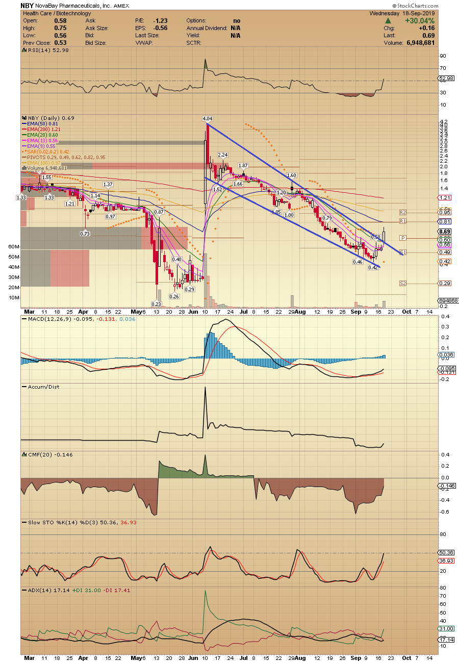 NovaBay Pharmaceuticals (NYSEMKT:NBY) initiated with Buy rating and $1.10 (108% upside) price target at Ladenburg Thalmann.