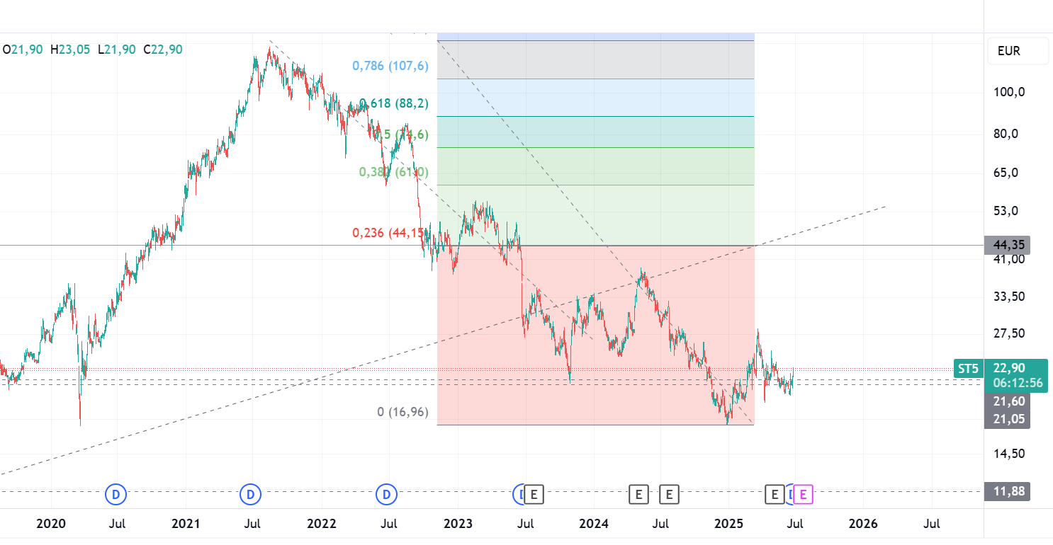 In wie weit das jetzt zu mehr Gebäudeisolation führt, kann man noch nicht beurteilen, es sollen ja auch Dimensionierungen von Tritt-/ Schallisolierungen auf den Prüfstand, um das Bauen zu erleichtern. Ob der turn around im Hypothekengeschäft jetzt schon vollzieht kann, man noch nicht sagen. Im Zusammenwirken dieser Faktoren ist es denkbar bzw. sogar sehr wahrscheinlich, dass der Kurs von Steico noch weiter im unteren Fiboretrace rumoszilliert.