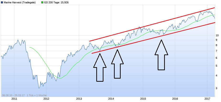 eines nicht vergessen, dass die großen Anleger wie scheue Rehe sind und deren Algorithmen noch mehr. Marine Harvest ist weltweit aufgestellt, derzeit wird nur der Trendkanal nach unten getestet. Ein echter Abverkauf sieht anders aus.
