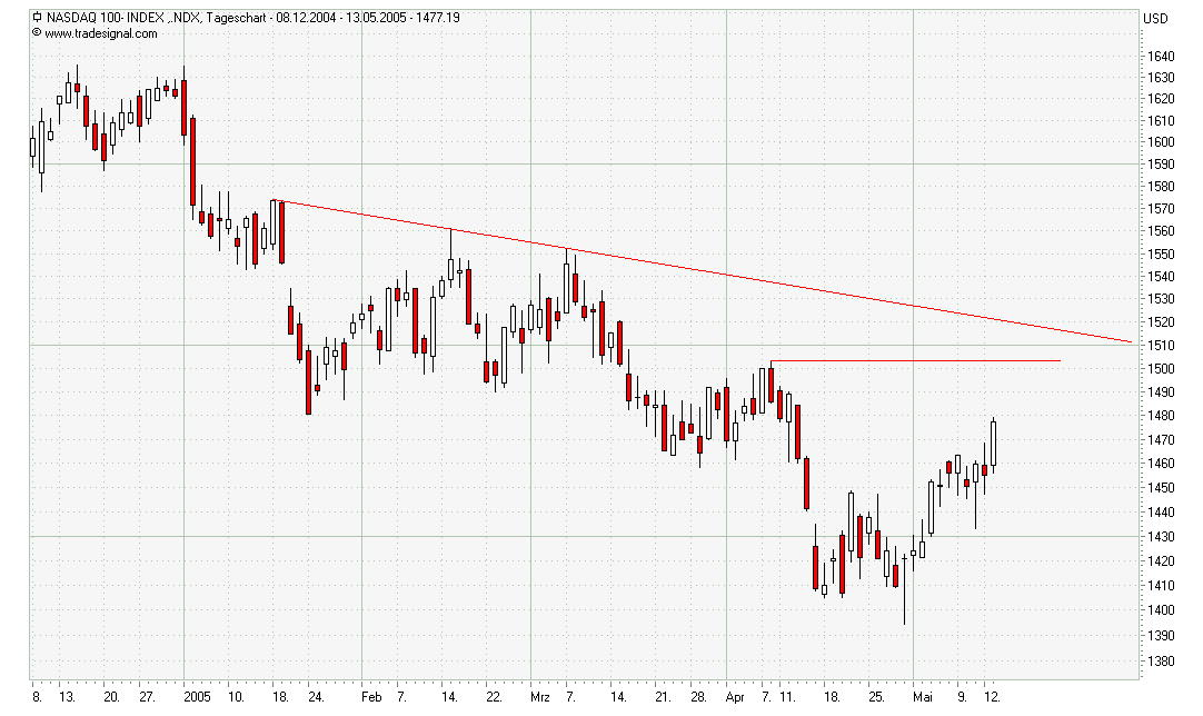 Ich gebe dem Nasdaq100 platz bis 1480, dem Dow 10250 und dem S&P 1165 und dann ist Schluss mit lustig.