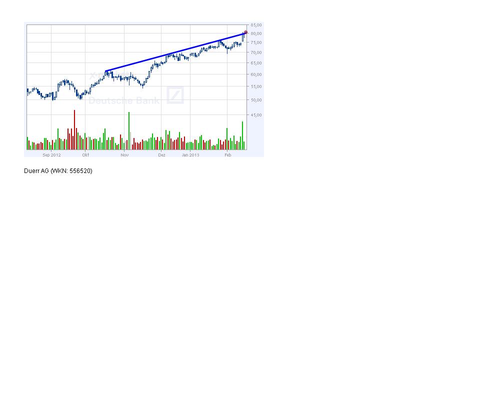 Die Commerzbank hat das Kursziel für Dürr von 86,00 auf 93,00 Euro angehoben und die Einstufung auf "Buy" belassen. Analyst Ingo-Martin Schachel rechnet in einer Studie vom Donnerstag mit guten Zahlen für das Schlussquartal 2012, die seinen Erwartungen entsprechen dürften. Zudem habe der Anlagenbauer für die Automobilindustrie 2013 weiteres Margenpotenzial. Der Experte hob die operative Gewinnprognose (EBIT) für 2013 an.