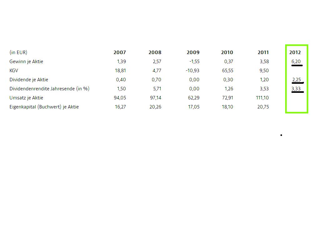 Dürr hatte im vergangenen Jahr von den kräftigen Investitionen vieler Autobauer in ihre Werke profitiert und wie erwartet neue Bestwerte bei Umsatz und Ergebnis erreicht. Die Projektanfragen aus der Automobilindustrie bewegten sich auch aktuell auf einem weiterhin gutem Niveau, hieß es vom Unternehmen. Bei stabiler Konjunktur sei 2013 mit leichten Zuwächsen bei Umsatz und Ergebnis zu rechnen. Die Aktionäre sollen vom guten Lauf der Schwaben profitieren und eine Dividende von 2,25 Euro je Aktie erhalten.
