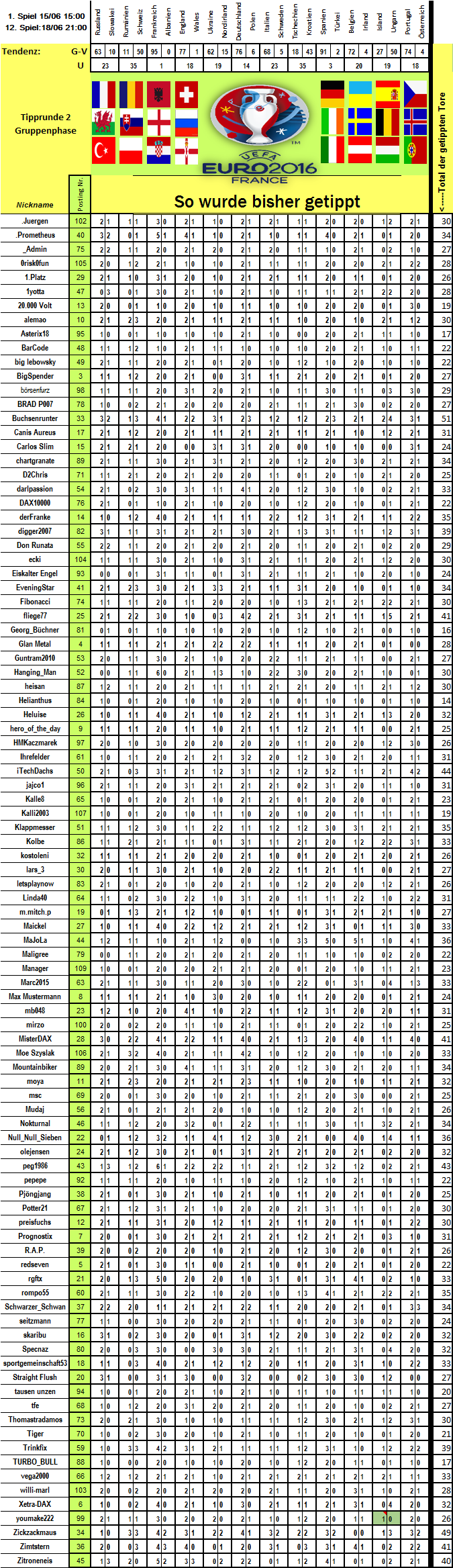 Tipprunde 2 (1. Spiel 15.06. 15:00 Uhr - letztes Spiel 18.06 21:00 Uhr)