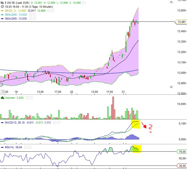 Hier wird gerade die Macht der Markttechnik eindrucksvoll demonstriert. Wenn es irgendwelche News gibt, von denen wir noch nichts mitgekriegt haben, dann haben wir sie mitgekriegt in dem Augenblick als 13,27 und 13,50 gefallen sind.