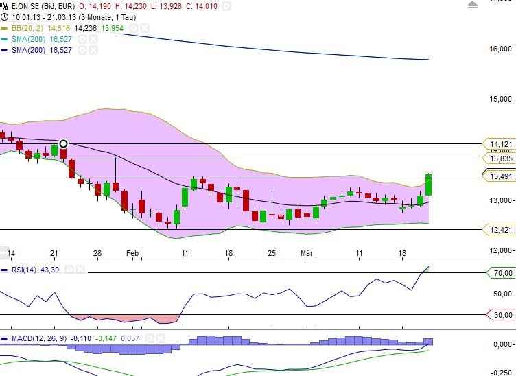 Ich sehe hier den Beginn einer Trendwende...erstmalig ist E.ON stark im Plus und der Gesamt stärker im Minus...die letzten Wochen/Monate war es genau umgekehrt. Ein gutes Zeichen...sofern nicht sofort wieder abverkauft wird...ich denke aber die letzten zittrigen sind raus...steigt der Dax wieder und nimmt gegebenfalls Anlauf auf das ATH könnte es dann E.ON Synchron mitnehmen...die 14,50 sind dann nicht mehr weit. Aber erstmal muss diese Woche überlebt werden und wir um die 13,40-50 schliessen und nicht schwächeln. Nur meine Meinung.