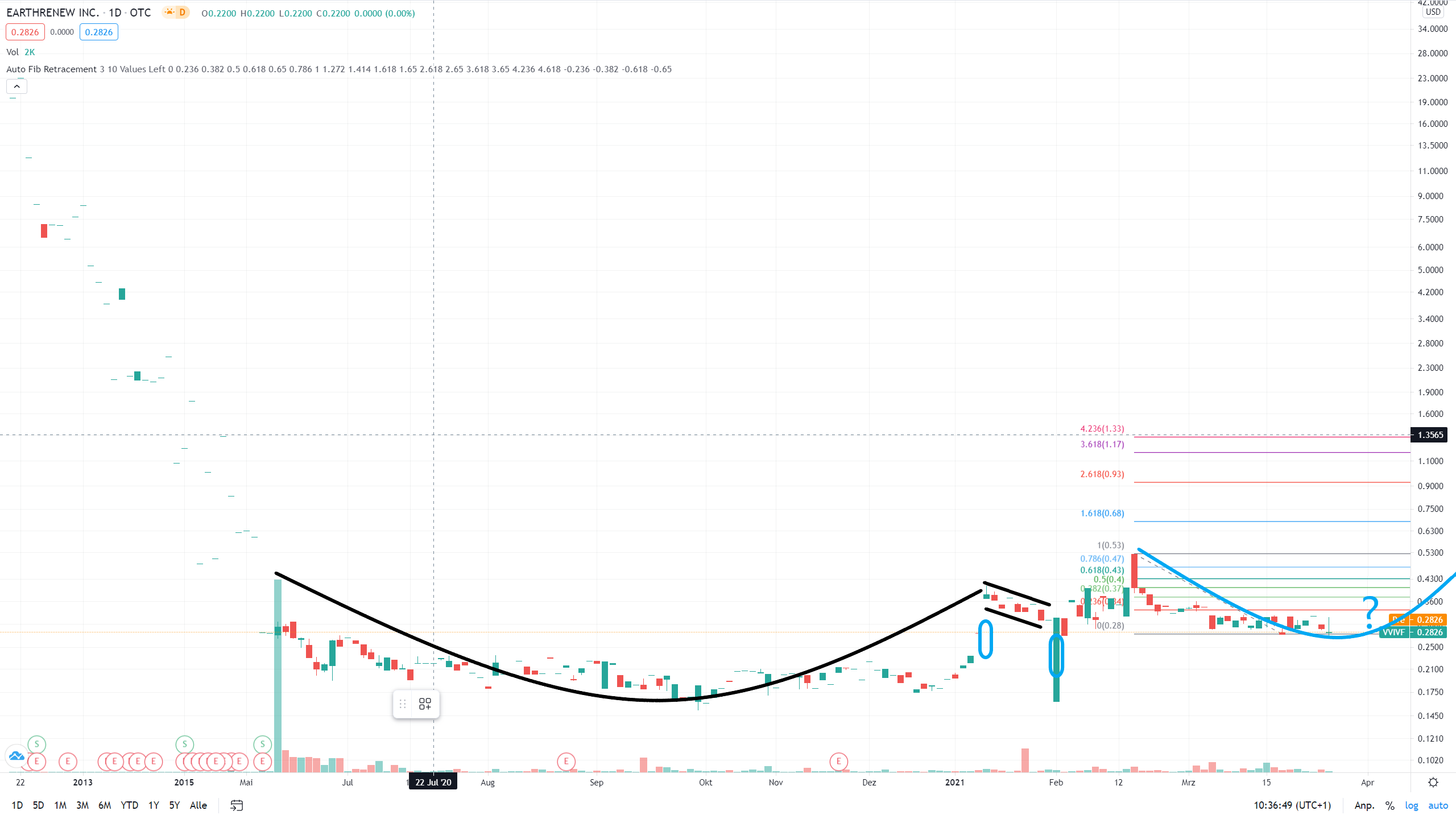 Ich denke, dass ist so ein Titel den man einfach so dem Depot beimischen und dann den Kurs einfach mal 2 Jahre nicht verfolgen sollte. Ich habe irgendwie das Gefühl, der Titel beinhaltet positives Überraschungspotential. Bis dato hat EarthRenew alle Absichtserklärungen umgesetzt, sei es nun der zweite Bau einer Anlage in den USA nach der Basisanlage Strathmore, oder der Zukauf von Replenish N. Von daher habe ich keine Zweifel, dass auch dieses Geschäft umgesetzt wird.....