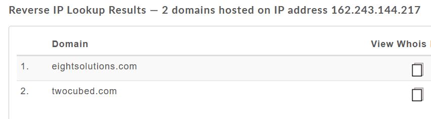 Die ES Domain schint jemandem zu gehören. Nach einem Reverse Lookup kann man außerdem sehen, dass eightsolutions.com und twocubed.com zusammengehören. Nicht zu verwechseln mit twocubed.co denn das ist etwas anderes.