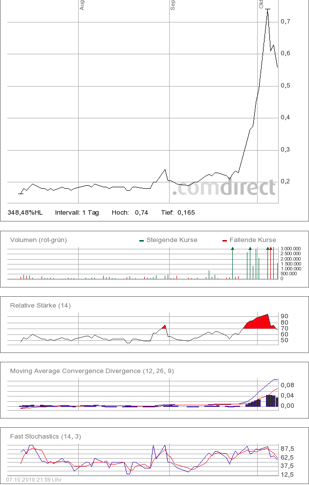 Würde bedeuten wenn man bei 0,58 Euro gekauft hat wäre man mit 21% im Minus binnen Stunden.