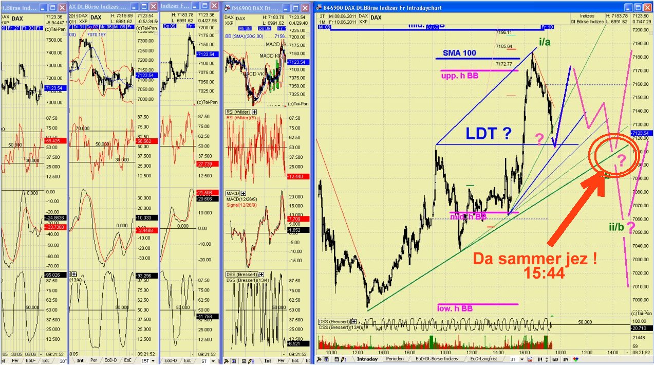 Dazu hat der DAX aber noch Zeit. Ich wollt nur rechtzeitig melden, daß das noch nicht die Welle auf 7170 sein kann. Jedenfalls nicht nach dem LDT-"Plan".