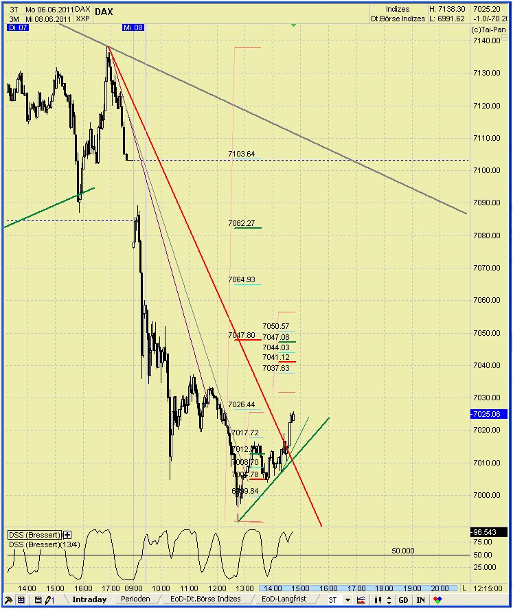Oberhalb der aktuellen AUT von 6991 über 7007 müßte der DAX aber schon die 7047 knacken um einen Impuls zu signalisieren.