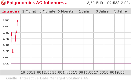 Epigenomics war aufgrund der Panikverkäufe wegen der Studie zu stark mit Abschlägen belegt. Da hatten einige Leute offenbar ihre Stopps zu eng gesetzt bzw. die Charttechnik zu stark im Auge gehabt.