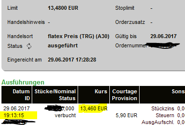 Institutionelle kaufen nach. Zwei 5000er Order heute in Frankfurt.