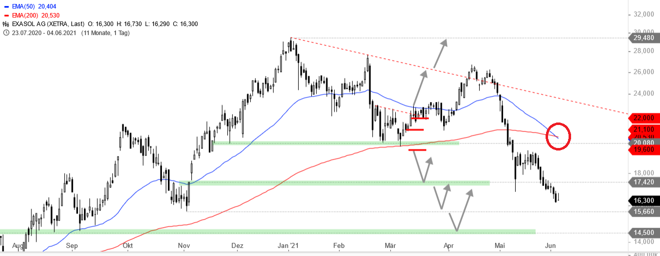 Kann aber natürlich auch sein, dass wir im Hinblick auf die überverkaufte Lage bei Exasol schon früher den Boden sehen. Aus Risikomanagementgründen sind diese marken aber die für mich relevanten.