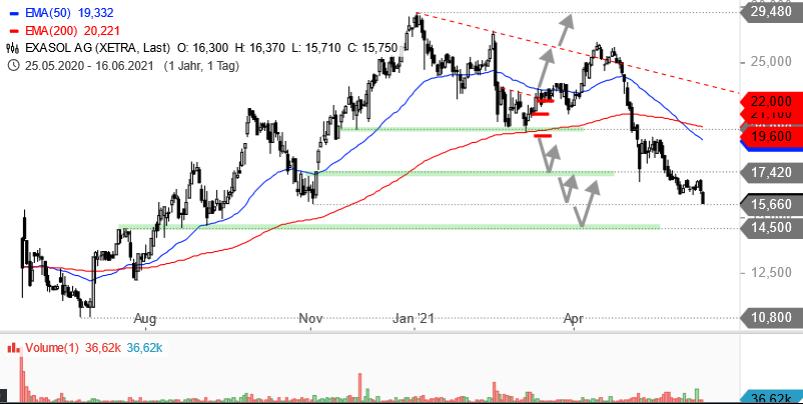 Und heute schon wieder rund 4% nach unten, bei 15,50 sind wir ja nun schon.