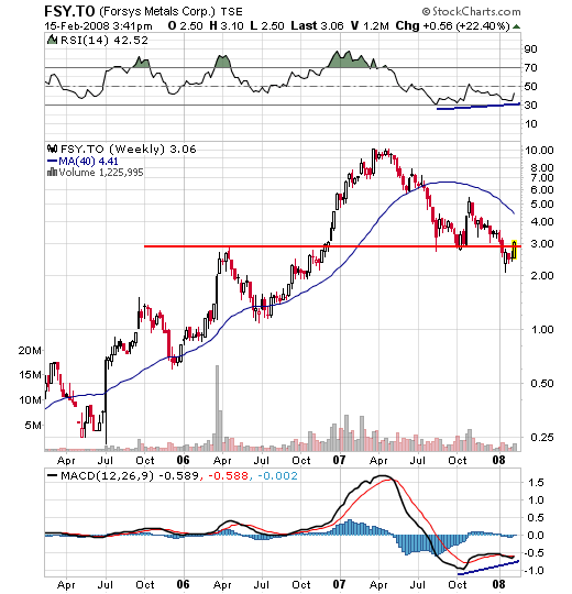 International Stock Targets is a world renowned independent research firm, based in Johannesburg, South Africa. Along with walking investors through the whole life-cycle of many different equities, we have also partnered with the top independent research firms worldwide to provide our members with the best knowledge to make money. Click the link below to see a sample of a recent "Buy Recommendation" that was issued on a small-cap equity that we believe is positioned to out-perform their competitors. We highly recommend that all interested small-cap investors sign up to www.internationalstocktargets.com for a free 3 month subscription and contact one of our representatives toll free 1 866 657 3334 to get access to our "small-cap" stock pick of the year. On Wednesday, February 13th, 2008 Forsys Metals Corp. (TSX: FSY) had a news release that triggered our research mechanism sensors at International Stock Targets. We therefore have also added Forsys Metals to our Toronto Exchange Watch List, their recent market activity has made them a possible candidate for a full analytical research report, to see a sample of our newest report view this link.