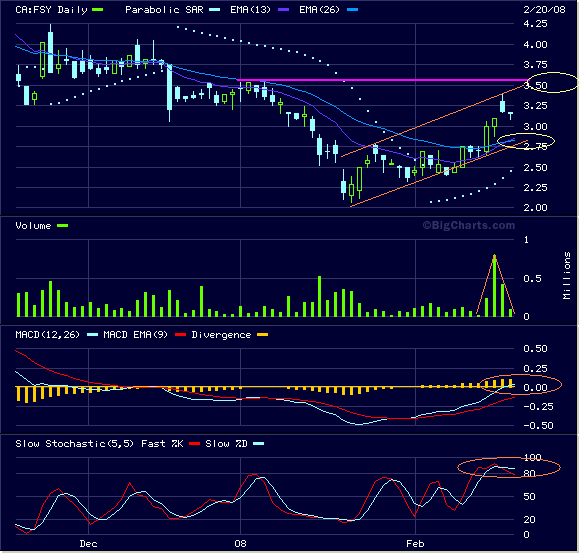 wir werden in diesem 1 Quartal nicht mehr all zu viel sehen, bzw. hören. Begründung - Kurserholungen werden weltweit erst mit 2 Quartal erwartet, und jeder kann sehen dass bei FSY alles passt, Verhandlungen werden getätigt, und es wird fleißig gearbeitet wie man sehen kann (siehe neue Bohrergebnisse). Wenns mein Unternehmen wäre, dann würd ich auch mit den richtigen Meldungen zuwarten bis das Marktumfeld wieder passt, und dann gehts so richtig ab! Ausserdem geht der Ölpreis bald auf die 120USD und dann werden alle nach Alternativen schreien, weil leistbar wirds nicht mehr lang sein :-) der Uranpreis wird leicht steigen nehm ich an, Euro zum CAD und zum USD wird sich auch ändern, und dann heißts im Sommer nach guten FSY Meldungen auf gehts in Richtung 6 Euro, und dann mit Jahresende - Anfang 2009 wenns heißt wir sind Produzent, dann seh ich Kurse um die 13 Euro und steigend mit einigen Shortattacken :-) von moki :-) nein Spaß bei Seite, ich red mit einigen BB`s aus Österreich immer wieder, die eher Marktneutral veranlagen, und auch bei Rohstoffen eine Riesenaufholpotential sehen, FSY wurde letztens genau unter die Lupe genommen, und da waren alle mehr als positiv. Ich kenn mittlerweile soviele Österreichische FSY Besitzer in Form von Shares die aber nicht von Frick und Co,. kommen, nein die Fundamentals benoten und investieren, und das mit richtig viel Geld, von daher schlaf ich in Ruhe meine kleines minus aus, und freu mich wenn FSY weiter steigt und nächstes Jahr zum Jahresende rechne ich das erste mal ab, und sag danke zu meiner Geduld. :-)