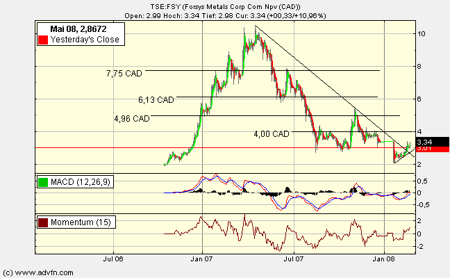 Nächste Zielmarke ist 2,50 EUR, und ich gehe davon aus, dass wir diese auch erreichen werden, spätestens wenn bekannt gegeben wird, dass Forsys die Minenlizenz erhalten hat.