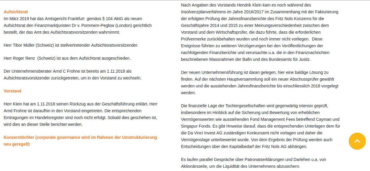 Allerdings stimmt es schon, der Wert ist nicht für Menschen, die zu schwachen Nerven neigen! Fritz Nols ist verdammt sehr spekulativ. Im Übrigen, wenn die einzelnen Baustellen-Probleme gelöst werden, so sollte das o.g. U. vor einer Neubewertung stehen,