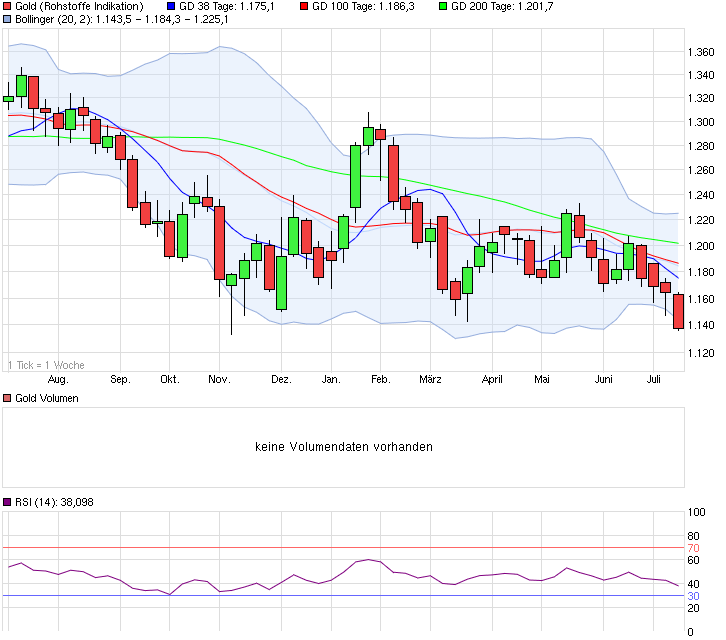 Mir kommt es so vor und das hatte ich am Donnerstag auch erwartet, dass ein Unterschreiten von 1142 USD/Unze zu technischen Verkäufen führen wird. Stopp-Loss-Orders werden aktiviert, wenn bestimmte Kursniveaus erreicht werden. Mit Hilfe der technischen Analyse kann man wahrscheinliche Kumulationsbereiche identifizieren, in denen solche Stopp-Loss-Orders gehäuft auftreten könnten. Der Bereich unter 1142 USD/Unze war ein solcher Bereich. Vielleicht haben sich viele einen Wochenschlusskurs unter 1142 USD/Unze als Stopp-Loss gesetzt, und als dieser Freitagabend stattgefunden hatte (Wochenschlusskurs lag bei 1134,40 USD/Unze) gab es eben zu Eröffnung in Fernost diese technischen Stopp-Loss-Verkäufe.....""