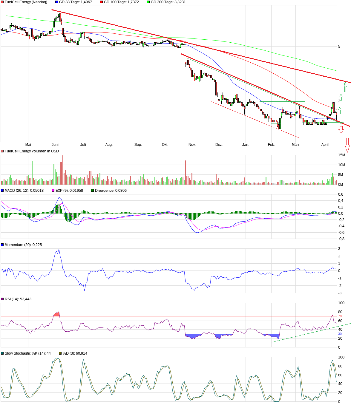 es hat sich in der vergangenheit gezeigt das bei fuelcell energy die chartechnik ein äußerst zuverlässiges mittel für klare handels-signale gewesen wäre. der wert befindet sich immer noch im downtrend konnte aber erste zögerliche signale einer trendumkehr liefern, so z.b. den bruch des mittelfristigen abwärtstrend inklusive eines regelkonformen pullbacks auf die ausbruchslinie. es besteht die möglichkeit das von nun an ein neuer trend etabliert werden könnte.
