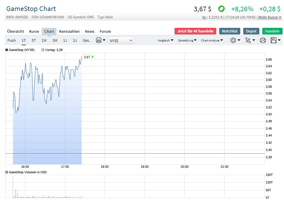 GME in den letzten Tagen sehr stark im Gegensatz zum Gesamtmarkt.