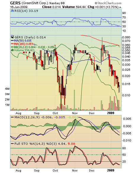 GS Clean Tech, nach dem Split. Seit dem Split notiert die Aktie seit gestern an einem neuen Tief. Charttechn­isch könnte es demnächst eine Gegenreakt­ion geben bis zum Bereich von ca. 0,20$.