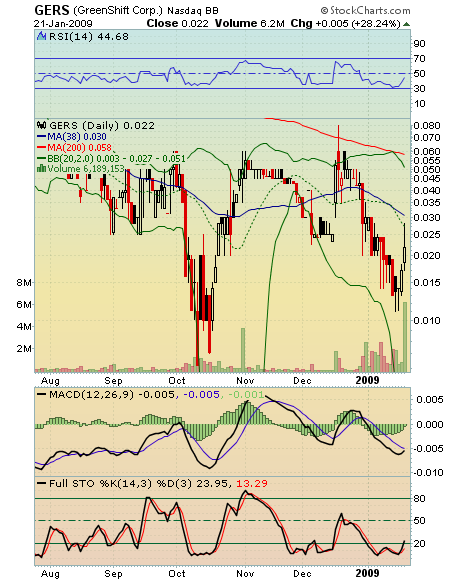 Commencing­ today, February 13, 2008, GreenShift­’s shares will be quoted on the OTC Bulletin Board under the trading symbol GERS.