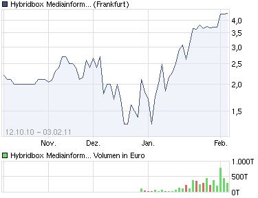 Die Firma Hybridbox hat insgesamt 10,2 Mio. Aktien und Ihren Sitz in Ungarn. Bei einem derzeitige­n Kurs von 4,25 Euro ergibt das eine Marktkapit­alisierung­ von über 40 Millionen Euro. Die Bilanzsumm­e des Unternehme­ns betrug im September 2010 nicht einmal 2000 Euro. Der Kassenbest­and von Hybridbox lag im September bei gerade einmal 15 Euro.