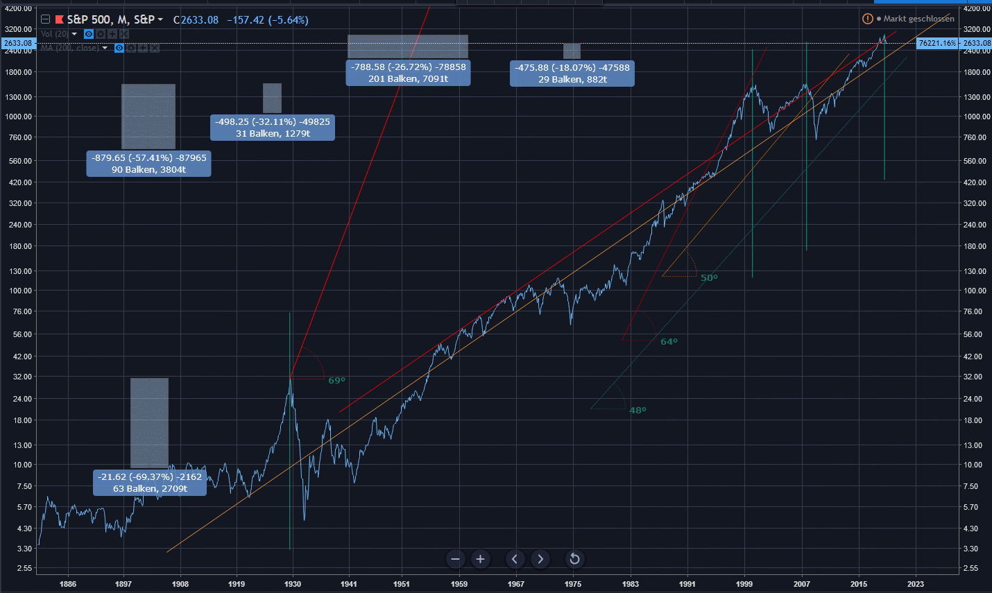 Wenn man beim S&P500 von 1905 bis 2019 eine neutrale Linie durchzieht.