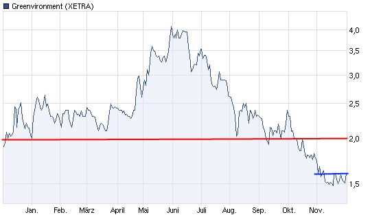 Sollte die Linie von 2,00 Euro überwunden werden ist der nächste Wiederstand erst bei 4 Euro auszumachen.