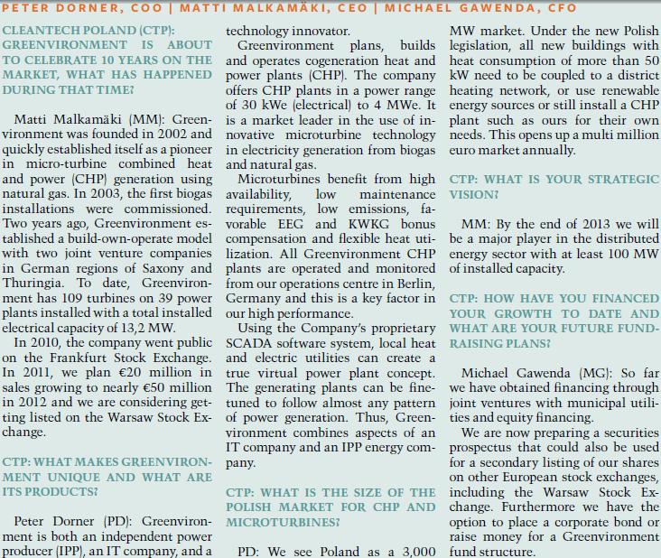 2. In einem Interview in der Cleantech Poland Anfang 2012: Quelle: www.cleantechpoland.com/