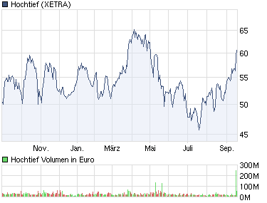 Die Aktie von HOCHTIEF notiert aktuell mit einem Plus von 0,11 Prozent bei 55,92 Euro. (13.09.2010/ac/n/d)