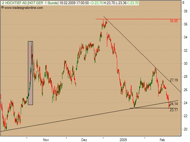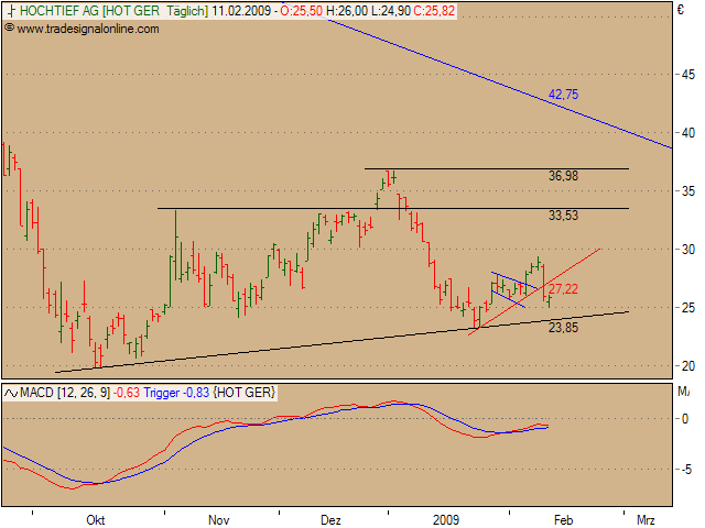 jetzt bleibt abzuwarten, ob sich die aktie wieder über die rote trendlinie 27,22 arbeiten kann.