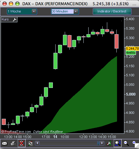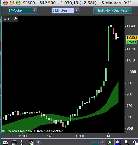 Ausserdem sollte man an gestern denken; da ging es nach Börsenbeginn in den USA mit "der Kraft der zwei Herzen" weiter aufwärts. Da bin ich auch auf dem falschen Fuß erwischt worden ..