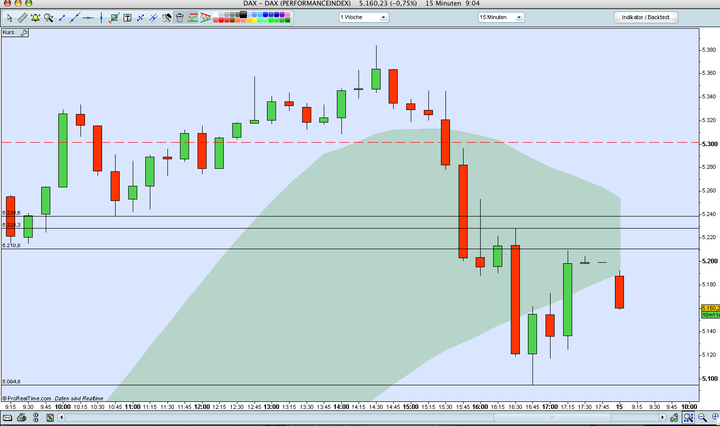 Es liegen weder klare Kauf - noch Verkaufsignale vor, allenfalls kann man versuchen, gegen das bisherige Hoch von gestern zu traden.