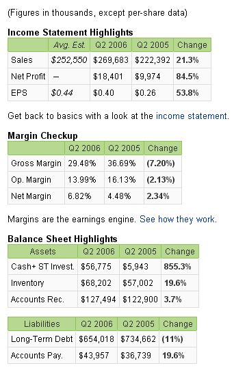 The company earned $28.3 million, or 60 cents a share, in the quarter, compared with $11.1 million, or 30 cents a share, a year ago. Analysts were forecasting 57 cents a share in the most recent quarter. Sales rose 28% to $280.5 million, above the consensus estimate of $268 million compiled by Thomson First Call.