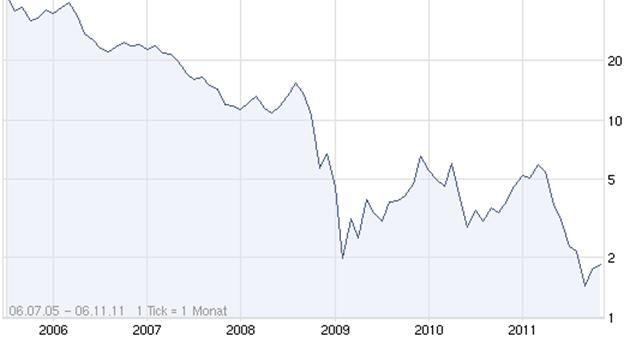 etwas tiefer könnte sie ruhig noch fallen - für einen Nachkauf reicht das nicht!