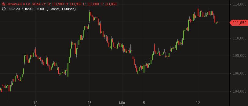 Die Performance der vergangenen drei Handelstage hinterließ eine bärische Umkehrformation im Chartbild der Aktie. Sollte den Bullen ein Tagesschluss nördlich des EMA200 (aktuell 113,57 EUR) gelingen, wäre dies als mittelfristiges Kaufsignal zu interpretieren.