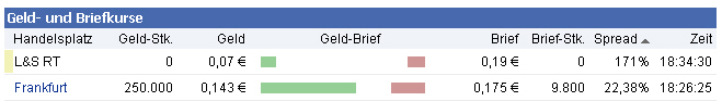 Börsen: Regulierter Markt in Frankfurt (Prime Standard); Freiverkehr in Berlin, Düsseldorf, Hamburg, München, Stuttgart