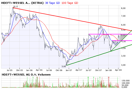 ...die großen unbekannten sind für mich,die märkte in england und usa....was geht da?...wenn höft und wessel dort signifikante aufträge "erobern"kann,dann wird höft und wessel auch über meine kursprognosen von 8-10 euro hinaus gehen...aber ich bin zuwenig in der materie,um beurteilen zu können,wie stark die konkurrenz dort in den märkten ist...und oftmals sind große aufträge dann ja auch von politischer seite gesteuert...