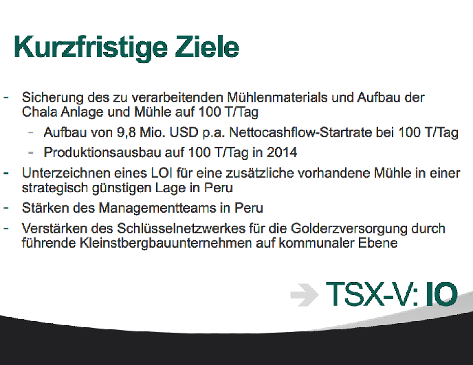 Inca One is focused on becoming the leader in custom processor of gold ore in Peru through acquiring, upgrading, and increasing production at existing milling facilities thereby providing attractive returns on capital to investors and excellent opportunity for share price growth