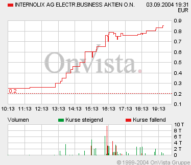 Die Aktie von Internolix­ gewinnt aktuell 34,15 Prozent auf 1,10 Euro.