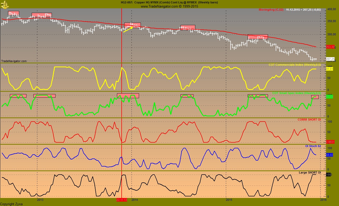 Eigentlich will ich bei Kupfer einen Long Trade machen....habe auch per heute ein neues 9 Tage Hoch....eigentlich passt alles bei Kupfer: Seasonal beste Einstiegszeit, bullische Commercials die Fonds haben den Sack prall mit Shorts.