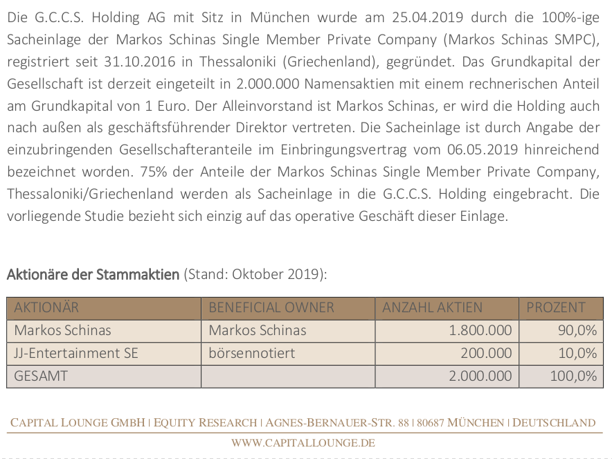 Die Beteiligung G.C.C.S. Holding AG hat mittlerweile wohl ein GK i.H.v. 2.250.000,--€ siehe: