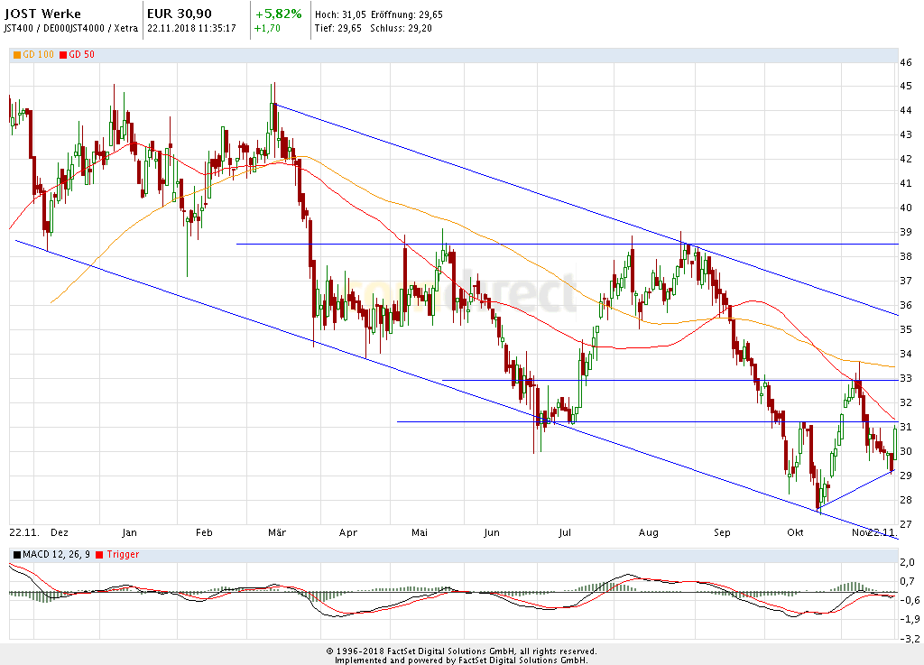 dass Jost Werke immer mit der Automobilindustrie in einen Topf geworfen wird, Kurs steil angestiegen bei Leoni, Conti, Schaeffler.... ebenso Jost Werke